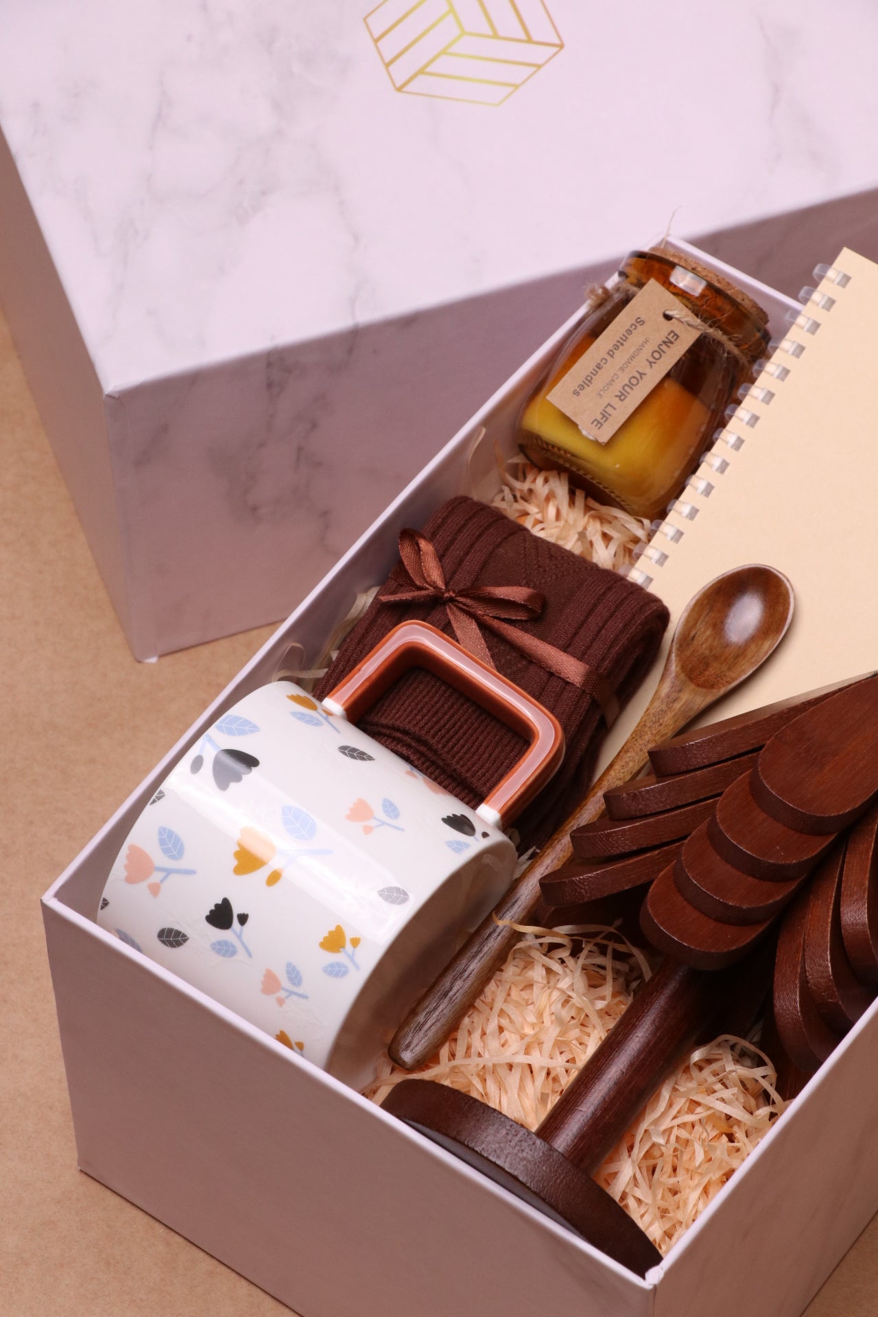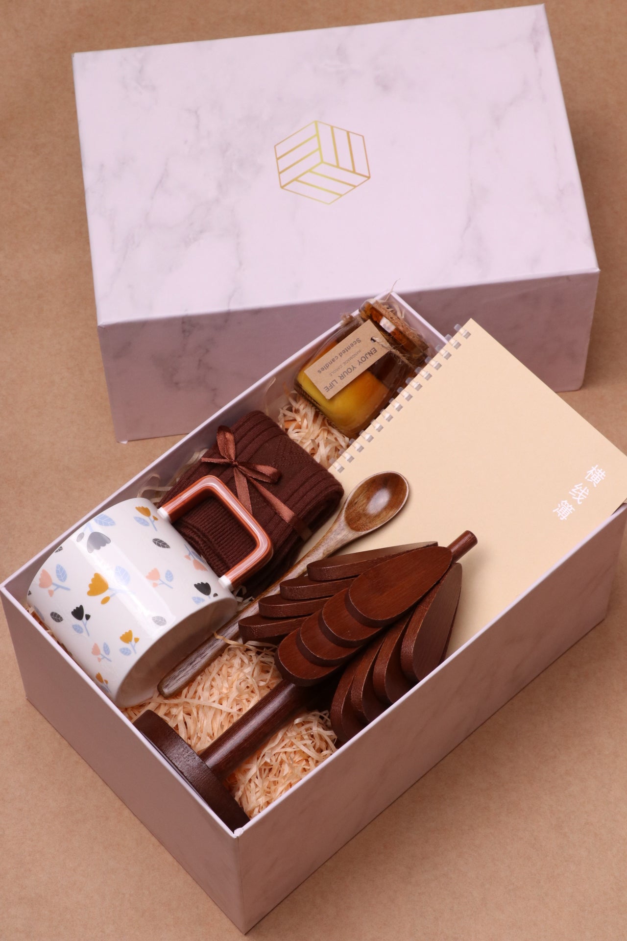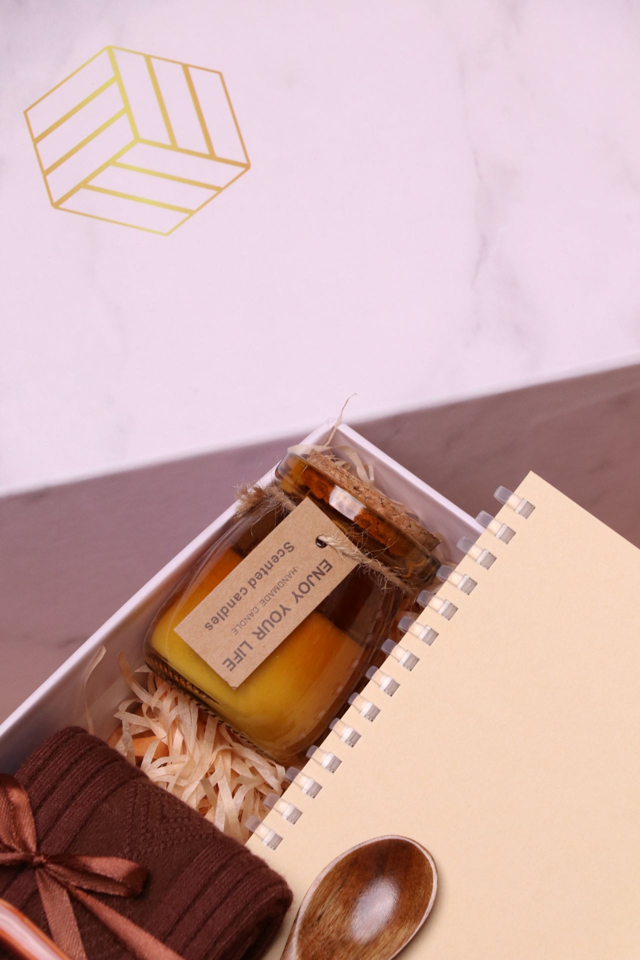 - 🕯️ شمعة عطرية فاخرة برائحة دافئة تمنحك إحساسًا بالسكينة.