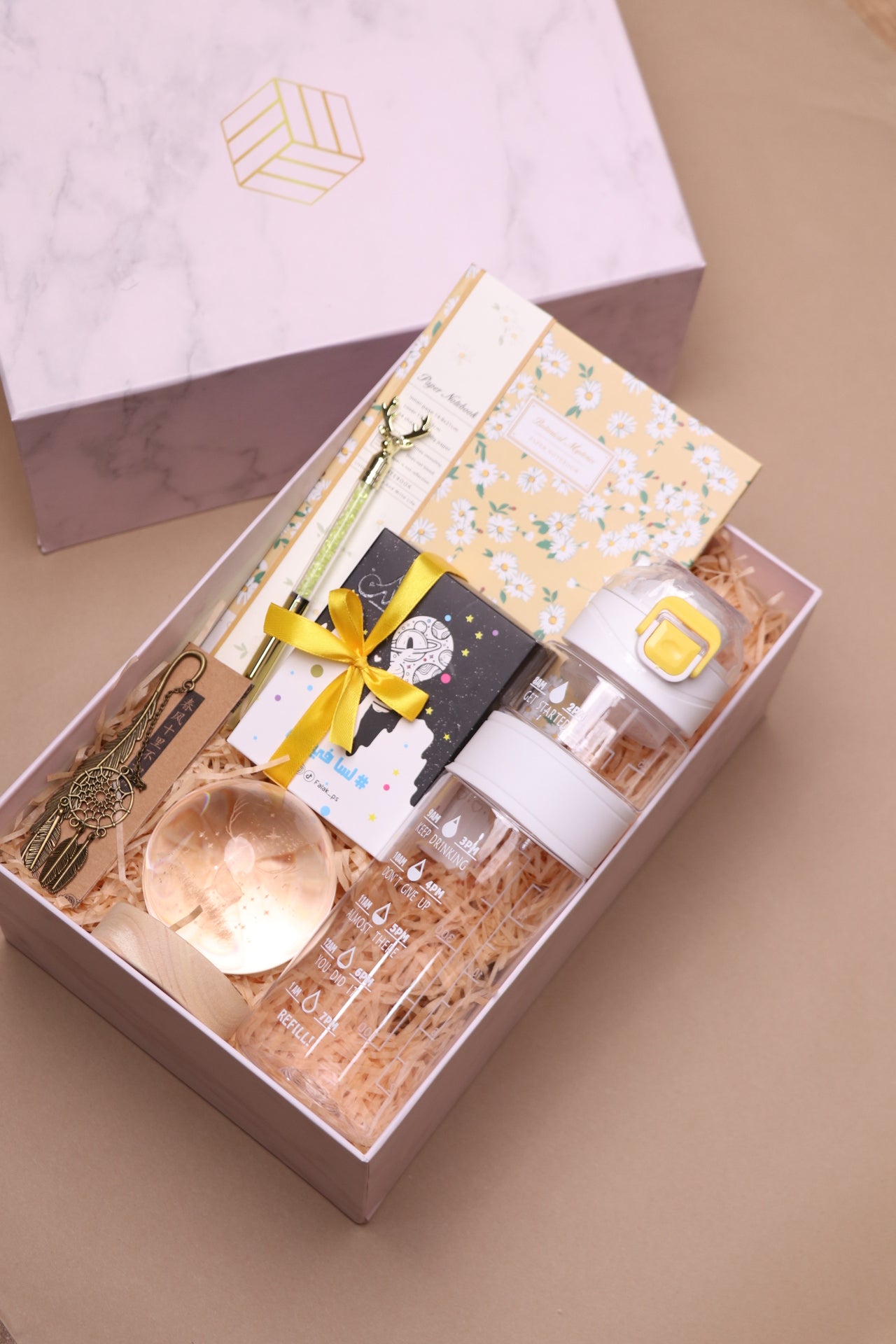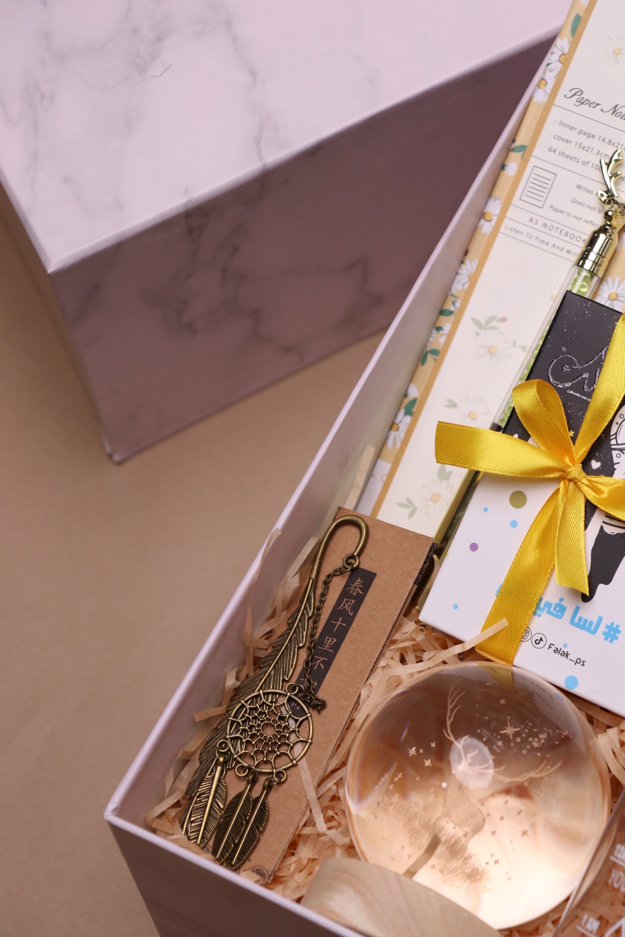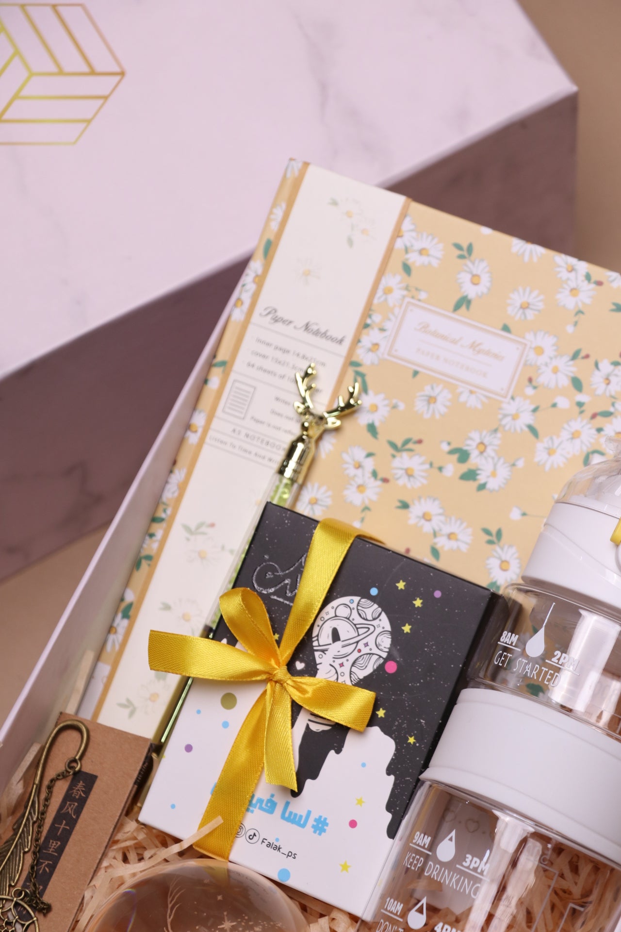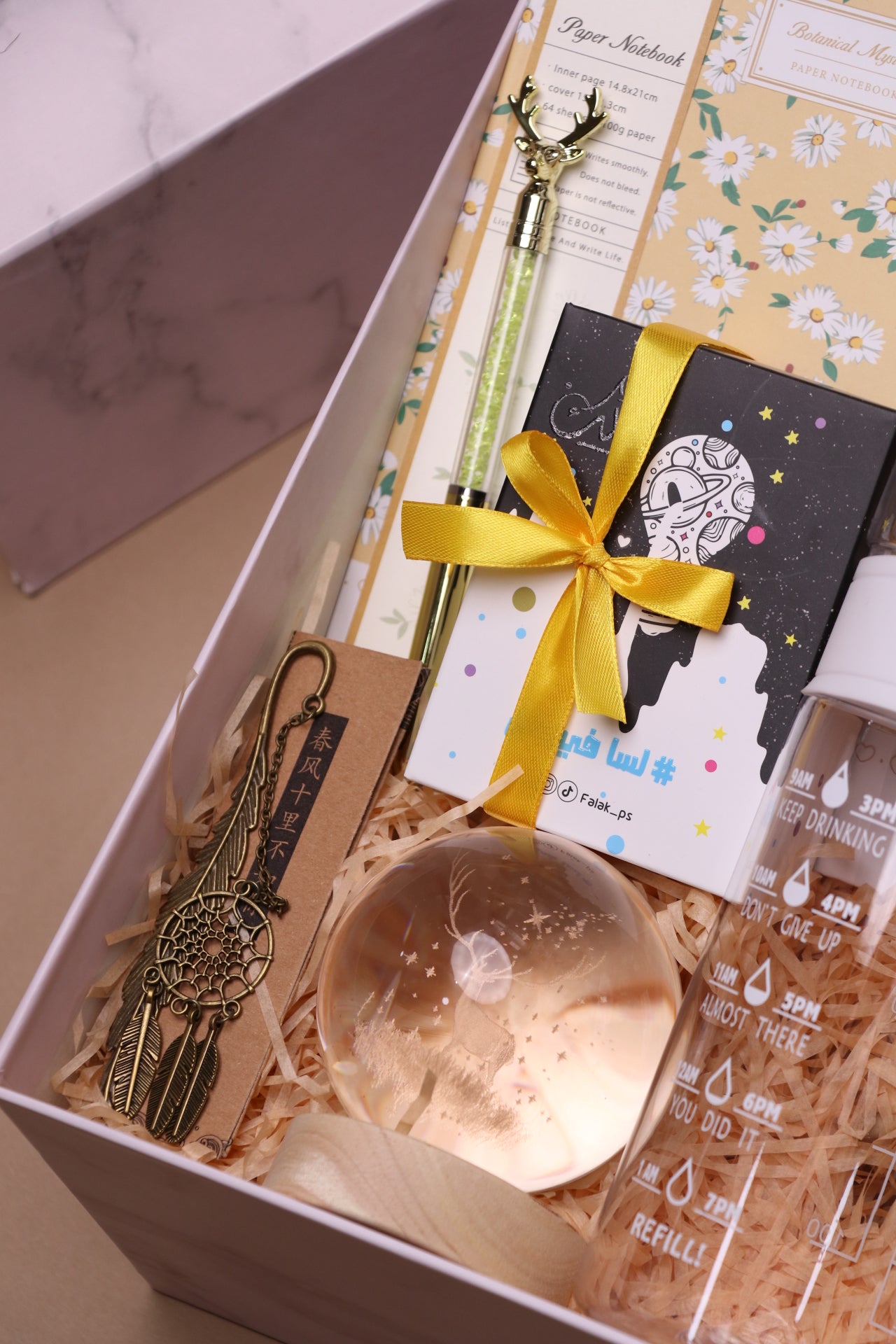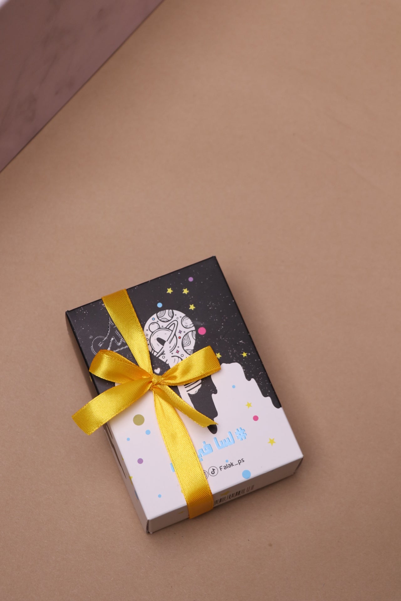 • منتج “لسه في قمر” – مجموعة بطاقات لطيفة تحتوي على رسومات وعبارات جميلة، مغلفة بشريط هدايا أنيق