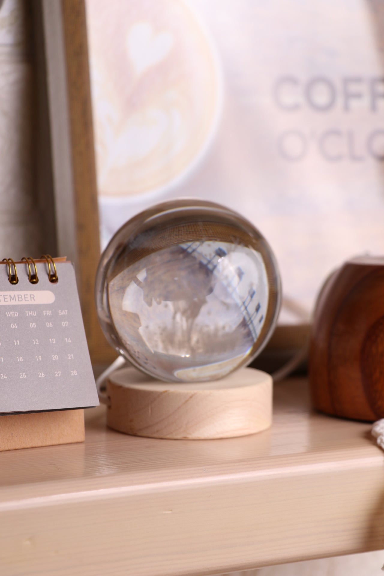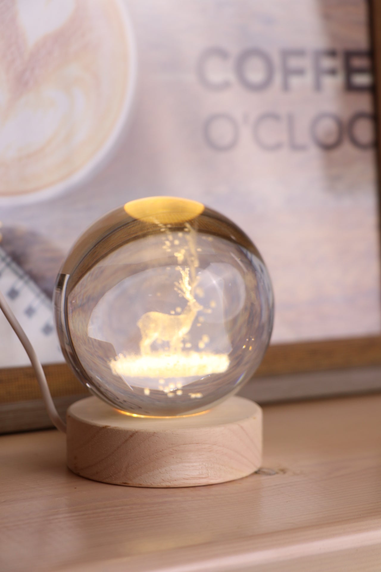 • بلّورة مضيئة بقاعدة خشبية لإضفاء جو هادئ ومريح