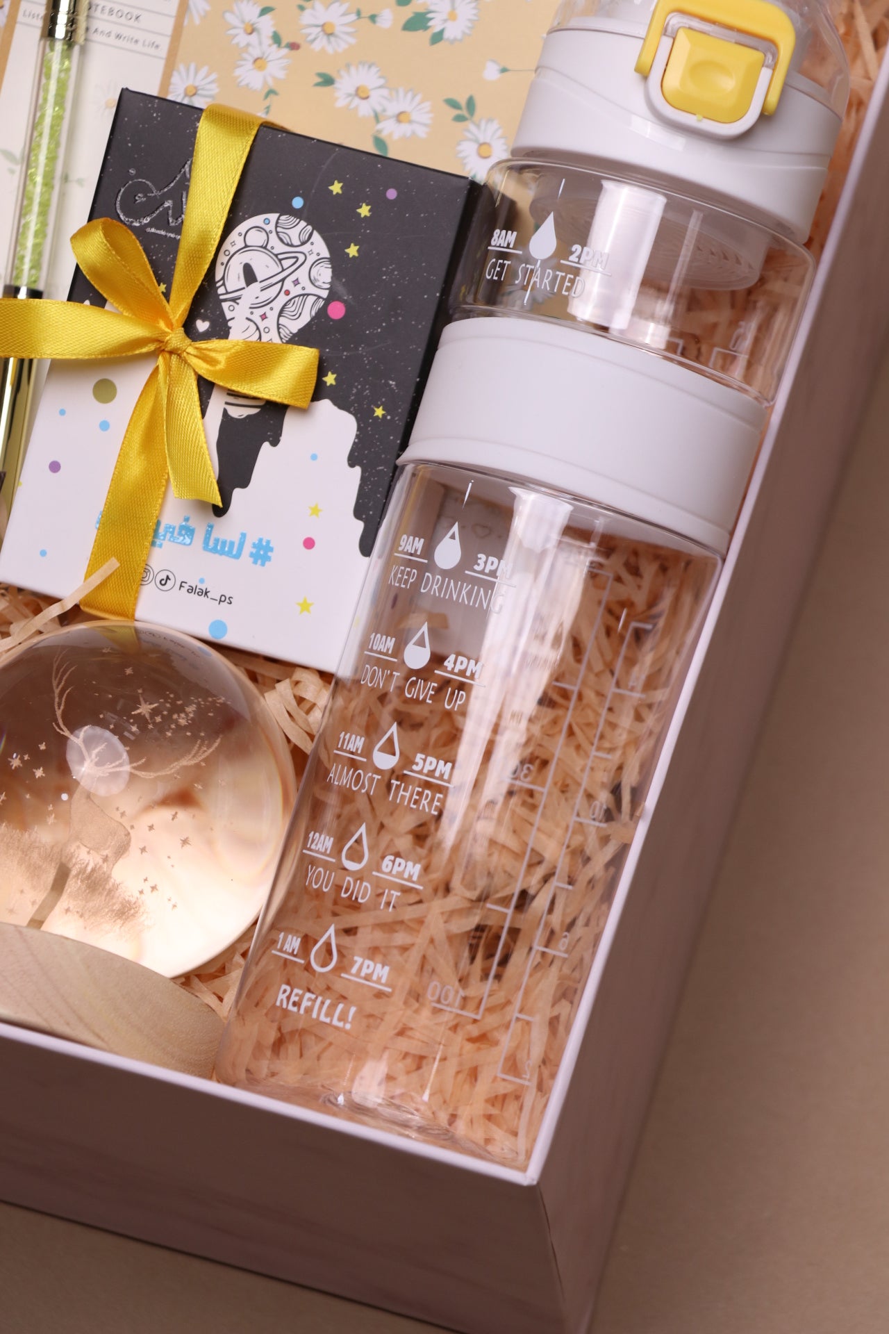 • مطرة ماء شفافة تحمل عبارات تحفيزية لمتابعة شرب الماء يومياً