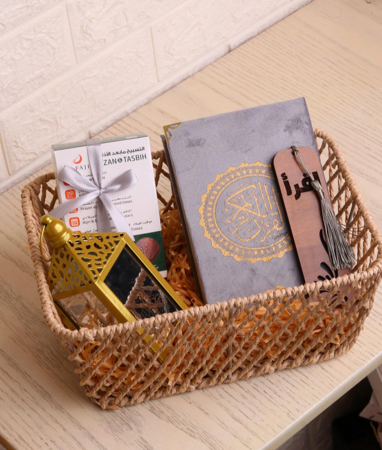 - تنسيق كامل داخل سلة طبيعية أنيقة بلمسة دافئة وجاهزة للإهداء