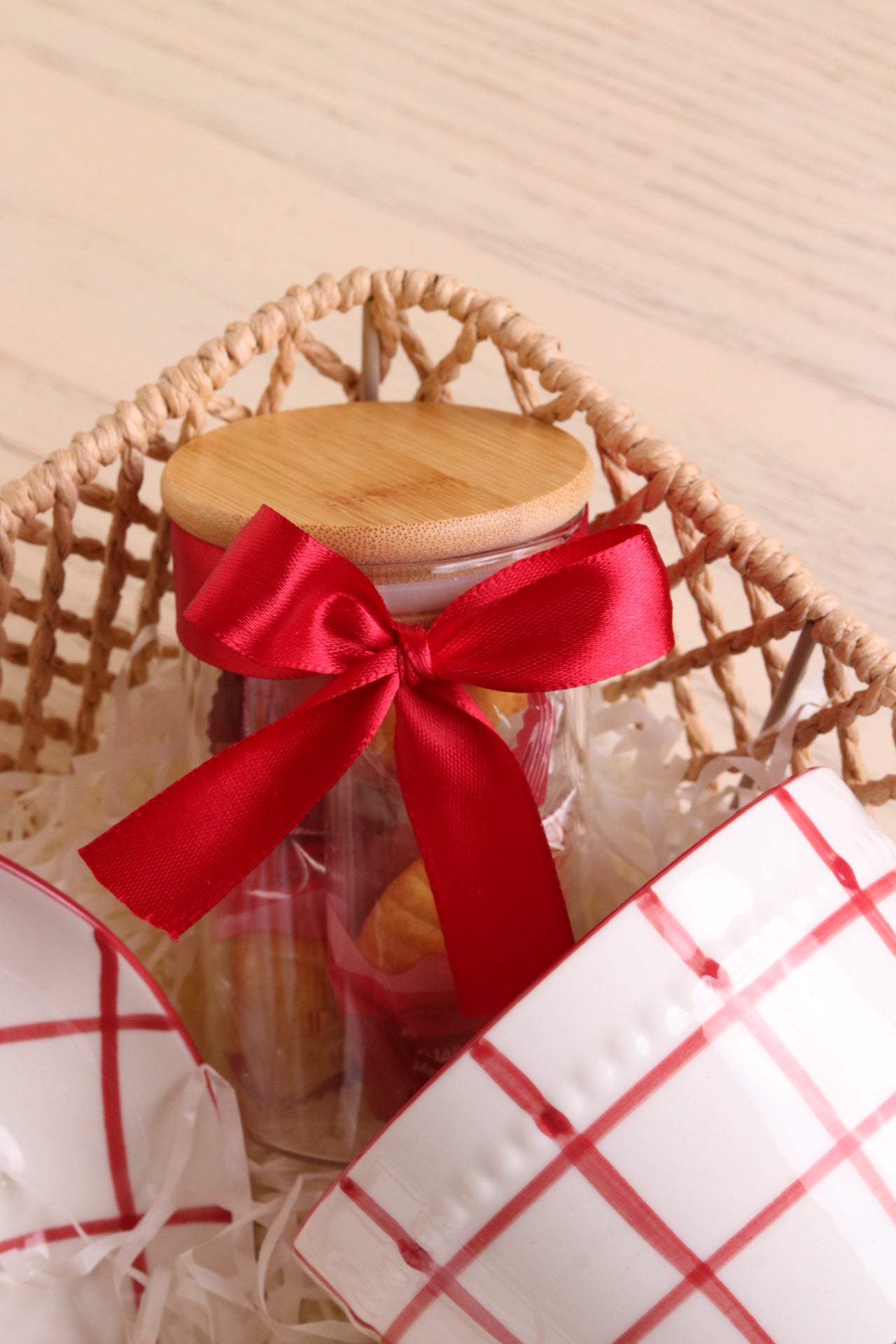 ✨ برطمان زجاجي بغطاء خشبي وربطة ساتان يحتوي على معمول من أجود أنواع المعمول